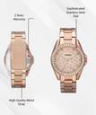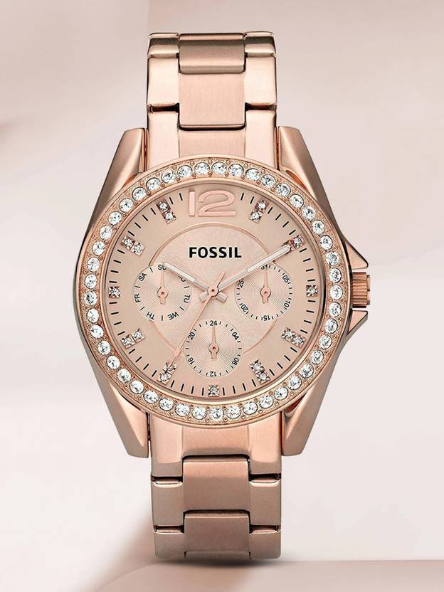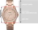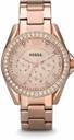 Riley style with a 45-stone topring, features a rose gold-tone finish and a textured rose dial. This Riley watch also features a multifunction movement.