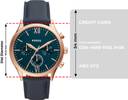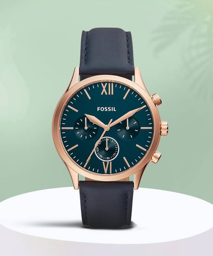 This 44mm Fenmore Midsize features a blue satin dial with Roman numerals at the six- and 12-hour markers, multifunction movement and a navy leather strap.Designed exclusively for Fossil Outlet.