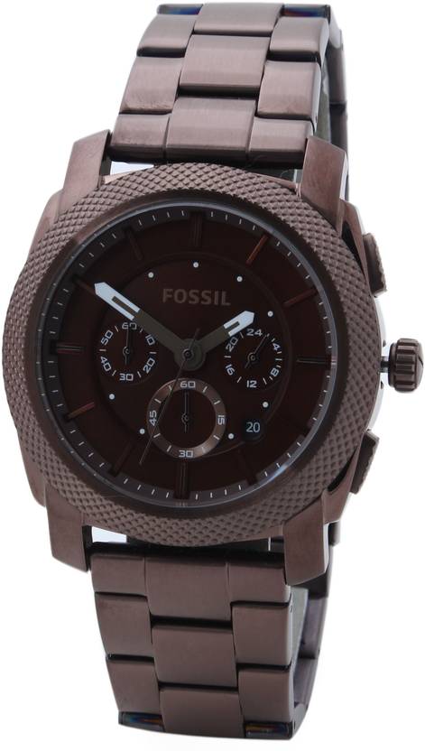 Branching out from the Machine line, this men’s watch from Fossil features a battery powered quartz mechanism that keeps this watch ticking in perfect synchronization with your time meridian. This Fossil watch, with its analog dial and knurled finished bezel, gives the timepiece a rugged look that would go extremely well with your formal everyday attire to work as well as with your denims and white t-shirt look over the weekend.