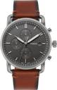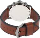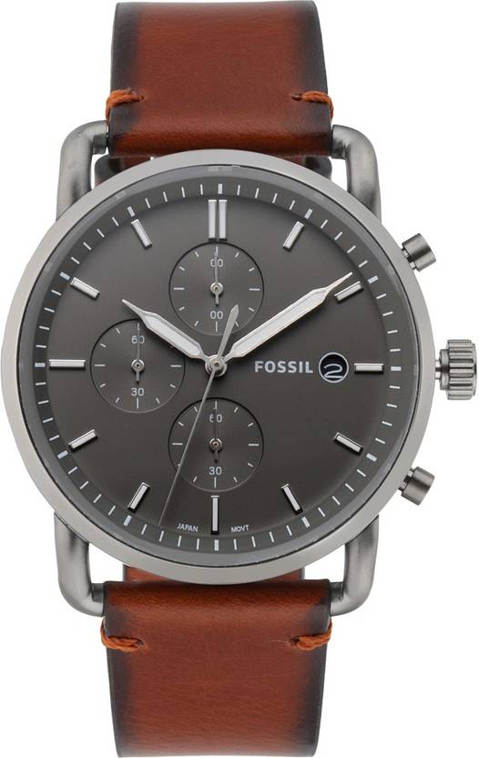 In love with vintage looking pieces? Then, this Commuter series watch from the House of Fossil is totally for you and is sure to fit that bill. This watch features a grey satin dial with stick indices and chronograph movement. A brown leather strap fastens the dial around your wrist. All this is enclosed in a stainless steel case with a flat case back. The watch is absolutely sturdy and would definitely last you a lifetime.