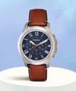 Modeled after vintage clocks, this timeless chronograph gets a refresh with a blue-tinted dial finish and genuine light brown leather strap.