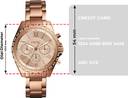 Case size: 40mm; Band size: 18mm; quartz movement with 3-hand chronograph display; mineral crystal face