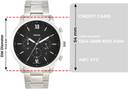 Case size: 44mm; Band size: 22mm; quartz movement with 3-hand date chronograph display; mineral crystal face