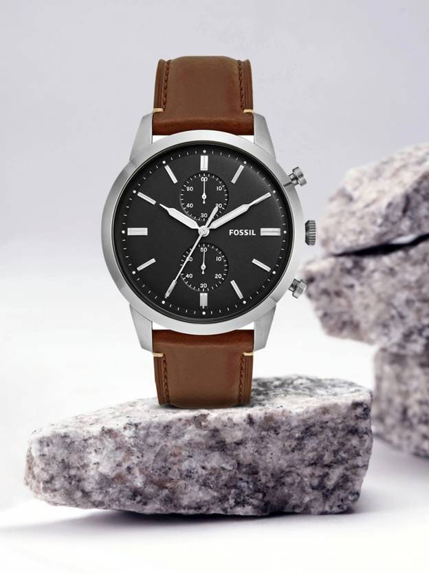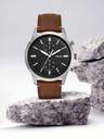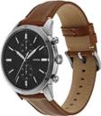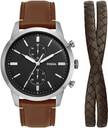 This set features a 44mm Townsman watch featuring a black satin dial, chronograph movement and brown eco leather strap and brown leather multi-strand bracelet.