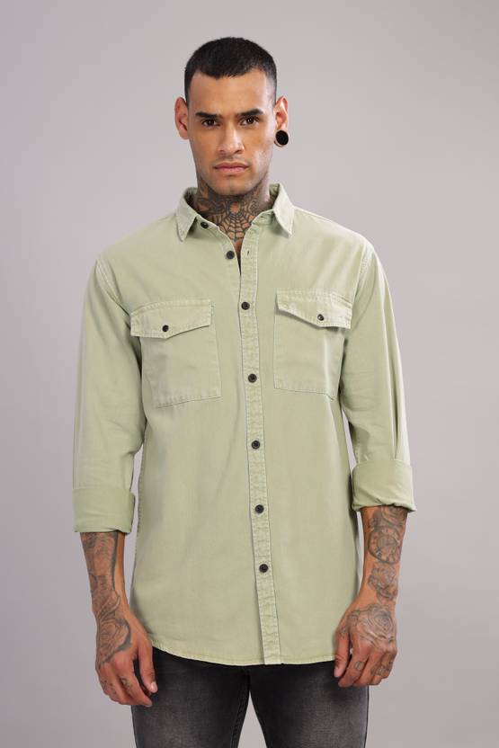 FOUL CHILD Men Solid Casual Light Green Shirt