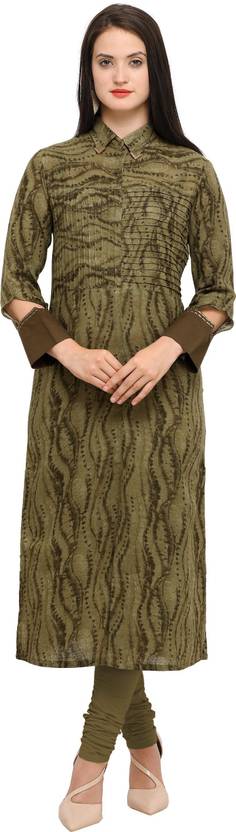 Women Printed Cotton Rayon Straight Kurta (Light Green)
