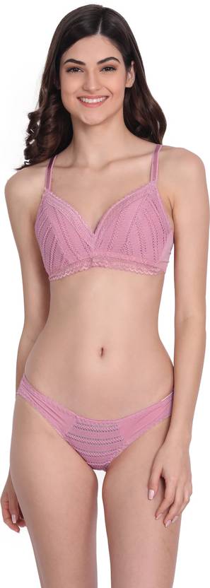 Bra & Panty Set Self Design Pink Lingerie Set