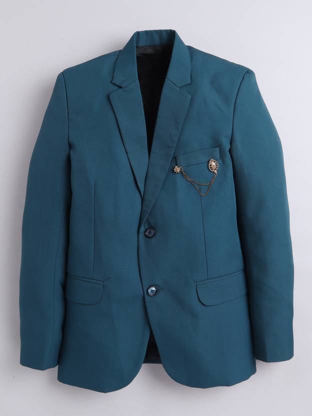Fourfolds Solid Single Breasted Festive & Wedding Men Blazer (Dark Green)