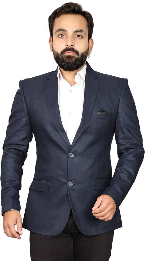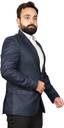 Fourfolds Solid Single Breasted Festive & Wedding Men Blazer (Blue)