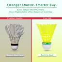 Durable nylon skirt for long-lasting performance, Bright yellow color for high visibility during play, Fast recovery and stable flight path, Ideal for indoor and outdoor badminton games