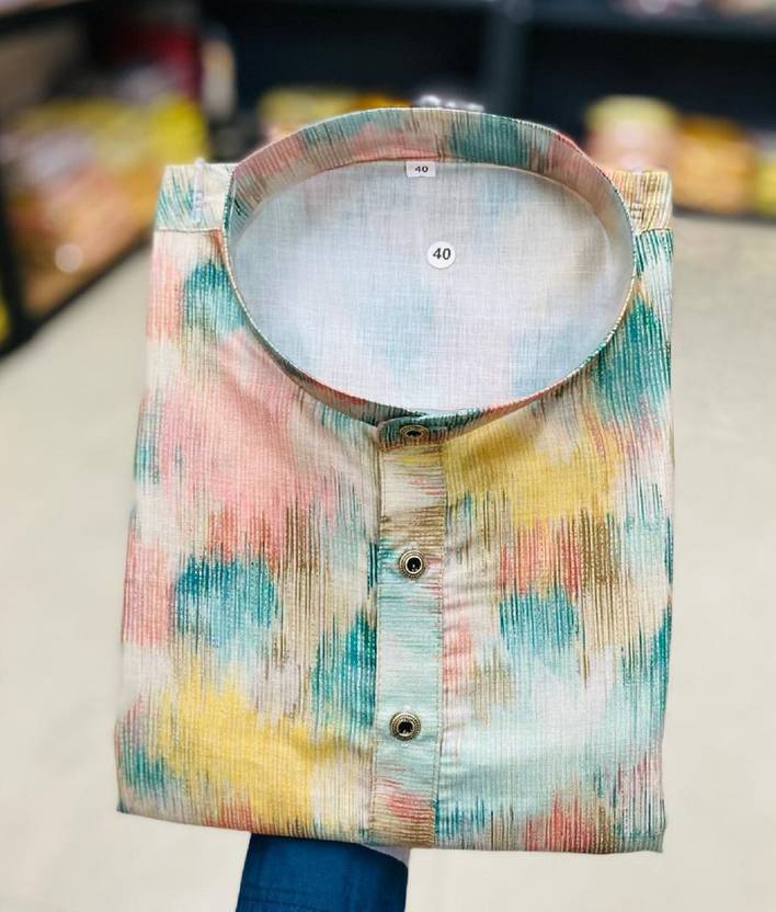 FOXDX Men Printed Straight Kurta (Multicolor)