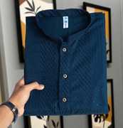 FOXDX Men Self Design Straight Kurta (Dark Green)