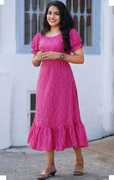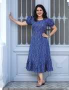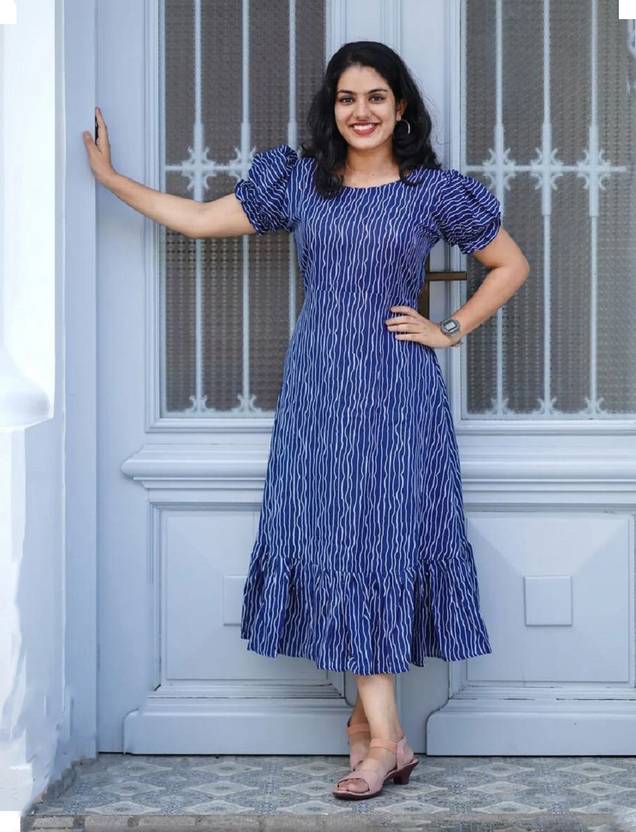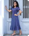 FOXDX Women Ethnic Dress Blue, White Ankle Length Dress