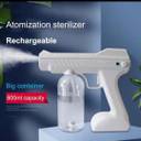 Wireless Disinfectant Atomizer UV Nano Spray Gun. It is Wireless and rechargeable. Light weight PC material and Room Temperature spraying. High pressure water pump. Portable and easy to carry. Adjustable spraying intensity. Sanitizing Spray indoor/outdoor electric disinfection machine, can produce disinfection mist with diluted disinfectant. It can be used in offices, homes, rooms, restaurants etc. for disinfection. Cordless rechargeable: Disinfection distance is no longer restricted. Built-in battery, can be carried and used anywhere when it is fully charged. The compact body lets you feel comfortable with design of the handle, easy to carry, can be used in homes and beauty salons.