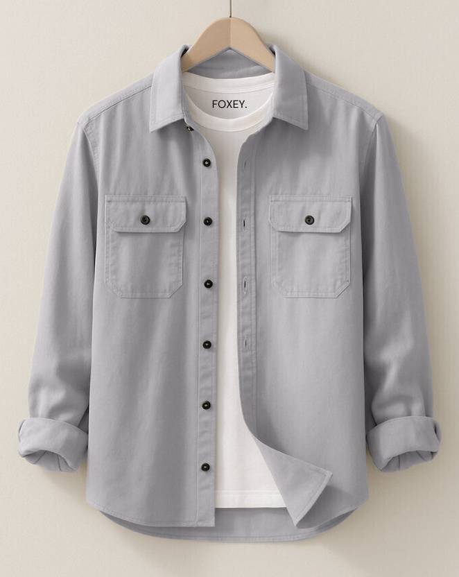 FOXEY Men Solid Casual Grey Shirt