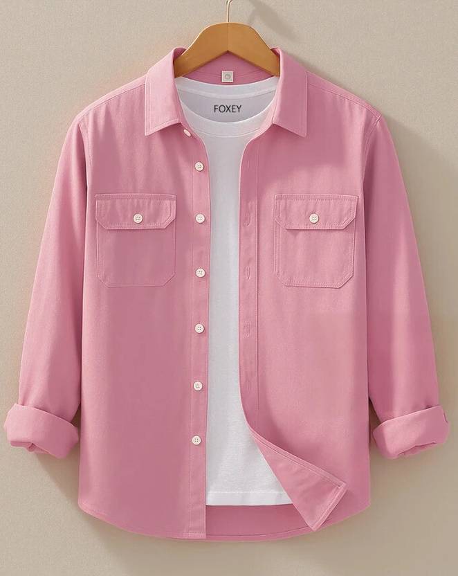 FOXEY Men Solid Casual Pink Shirt
