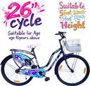 FOXGLOVE Twinkle 26 Inch Purple with Basket Girls Cycle for Height 4Ft to 6 ft 85% Fitted 26 T (inch) Road Cycle (Single Speed, Purple, Rigid)