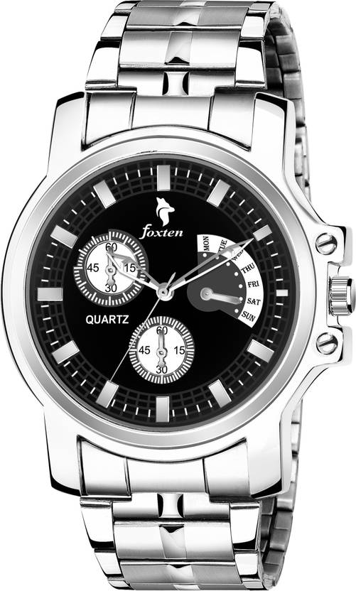 Chronograph Black Dial Metallic Strap Black Analog Watch - For Boys,Men