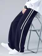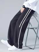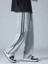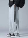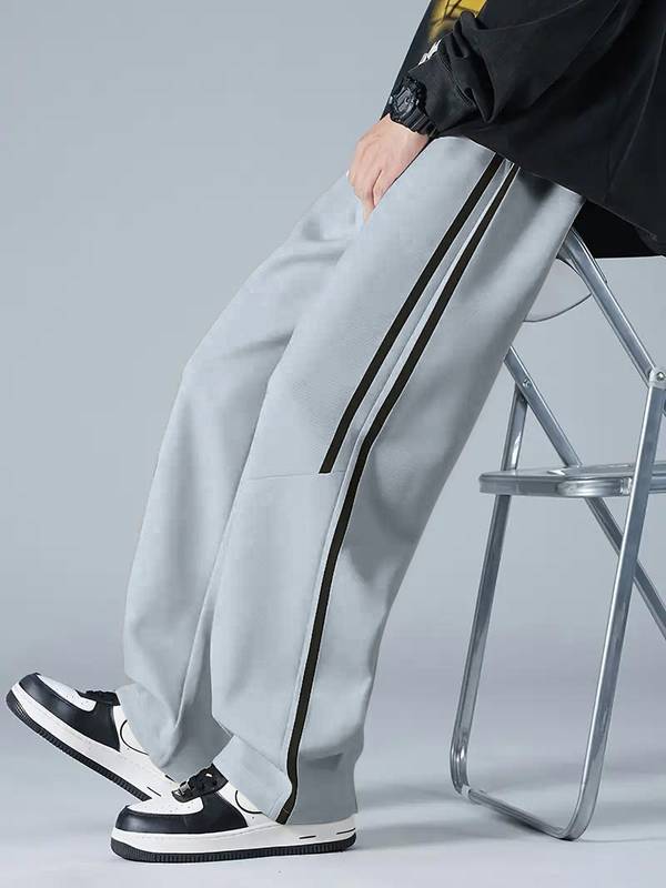 Menโs relaxed fit track pants designed with a straight wide-leg cut, featuring an elastic waistband with adjustable drawstrings. The clean side piping detail adds a sporty and modern look, making them ideal for casual wear, workouts, and streetwear styling.