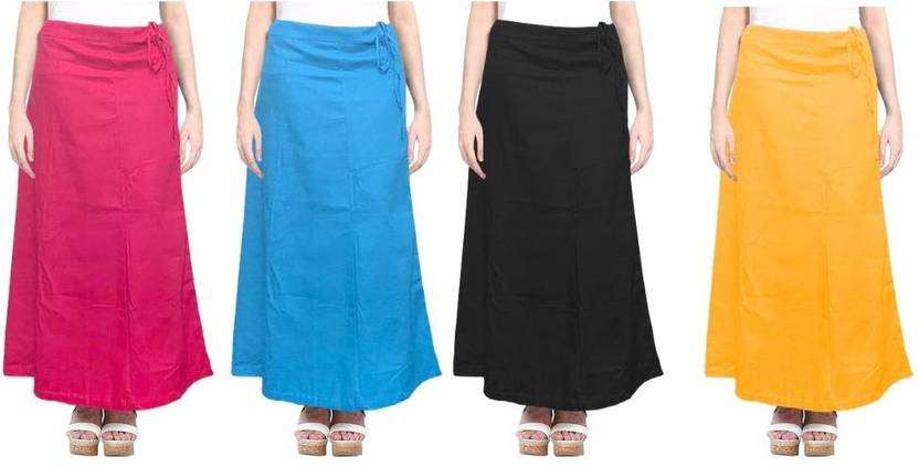 Saree Petticoat (Pack of 4) Pink Blue Black Yellow with Button -