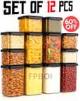 FPBOI Plastic Grocery Container - 1100 ml, 500 ml (Pack of 12, Black)