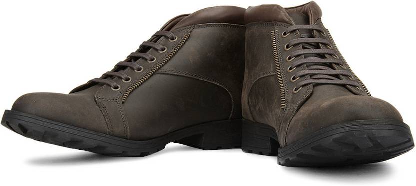 Raised Ankle, Texture Detail, Panel and Stitch Detail, Metal Zipper Teeth Detail, Eyelet Detail