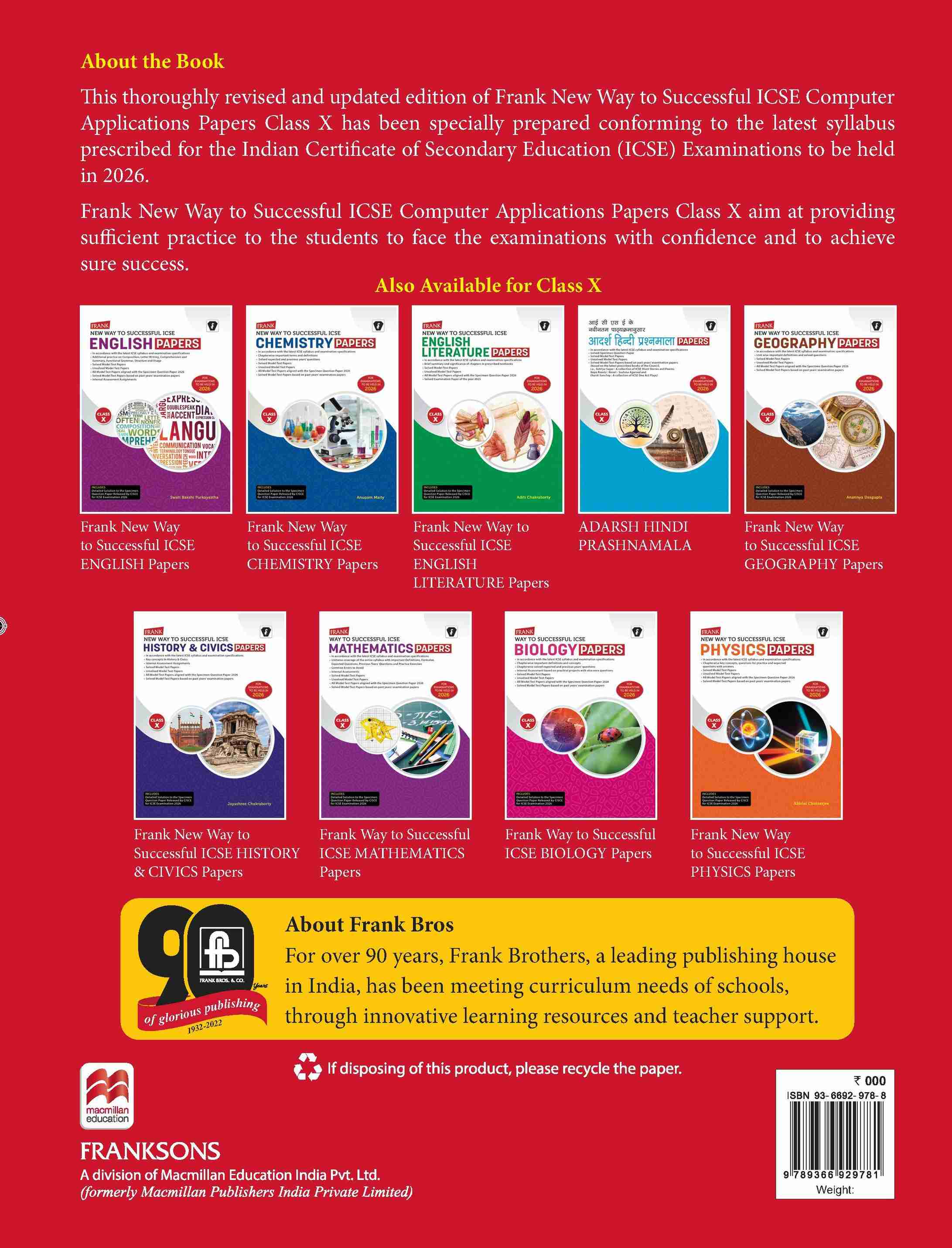 Frank ICSE Computer Applications Class 10 Exam Papers | For 2026 Exam | Latest Syllabus | Chapterwise Solutions & Model ...