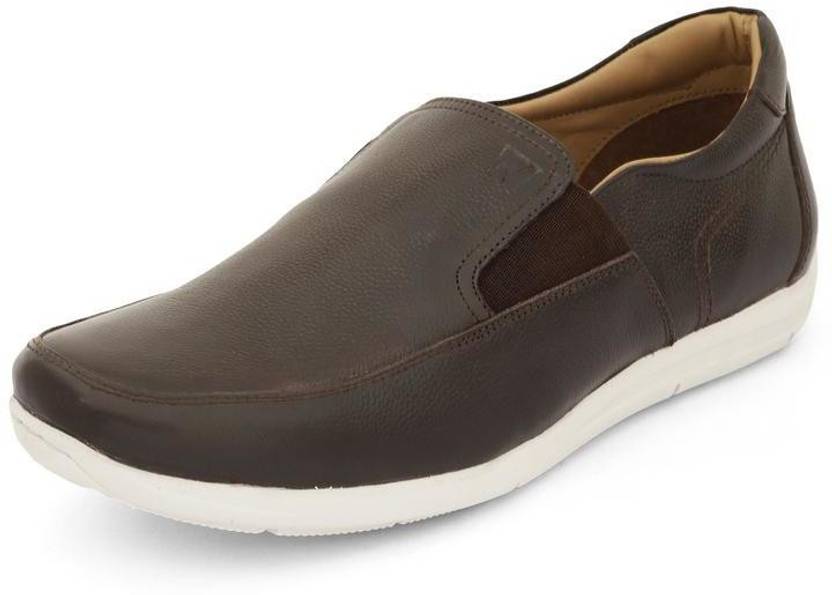 A man's wardrobe is incomplete without a good pair of shoes, and these 100 % Geniune Leather shoes by Frank Walker hit the mark. A wingtip-inspired style in a classic Tan hue, it's finished with elasticized gussets along with a cushioned footbed.Elevate your style with this classy pair of Slip on Shoe. Featuring a contemporary refined design with exceptional comfort, this pair is perfect to give your quintessential dressing an upgrade.