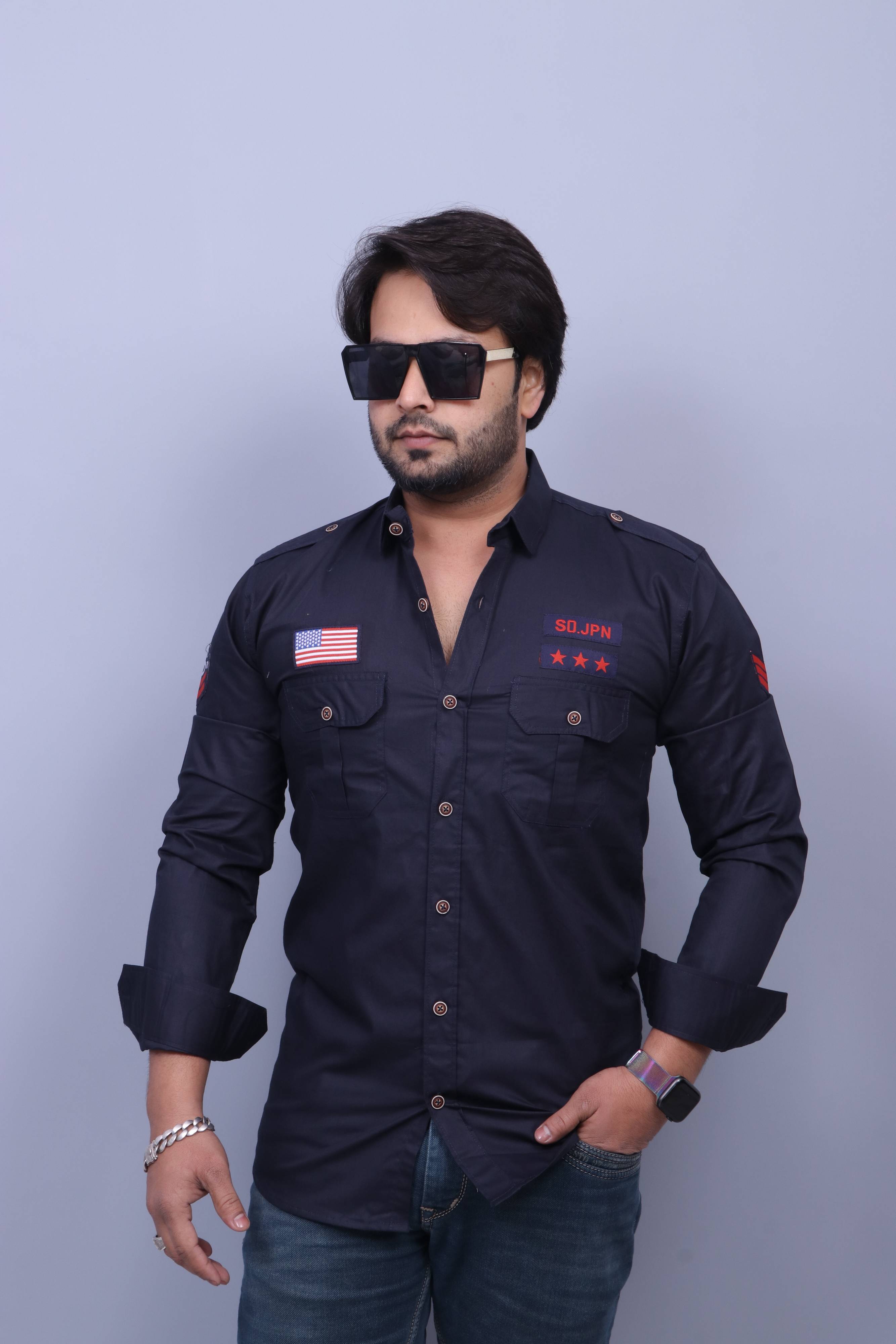 Add a rugged yet stylish touch to your wardrobe with this solid shirt featuring double flap chest pockets. Made from breathable cotton fabric, it offers comfort with a structured design. Perfect for casual outings, travel, or semi-formal occasions, this shirt combines utility with timeless style.