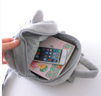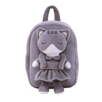 Frantic Premium Quality Soft Fabric Kids Velvet School Bag (FullBodyGreyCat) Plush Bag (Grey, White, 15 L)