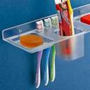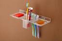 Frap Plastic Wall-Mounted Bathroom Organizer with Soap Dish, Tumbler & Brush Holder Plastic Wall Shelf (Number of Shelves - 1, Clear)