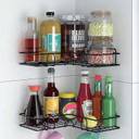 Frap Sticker Mounted 2-Tier Iron Bathroom Corner Shelf Rack Organizer – Black Iron Wall Shelf (Number of Shelves - 2, Black)