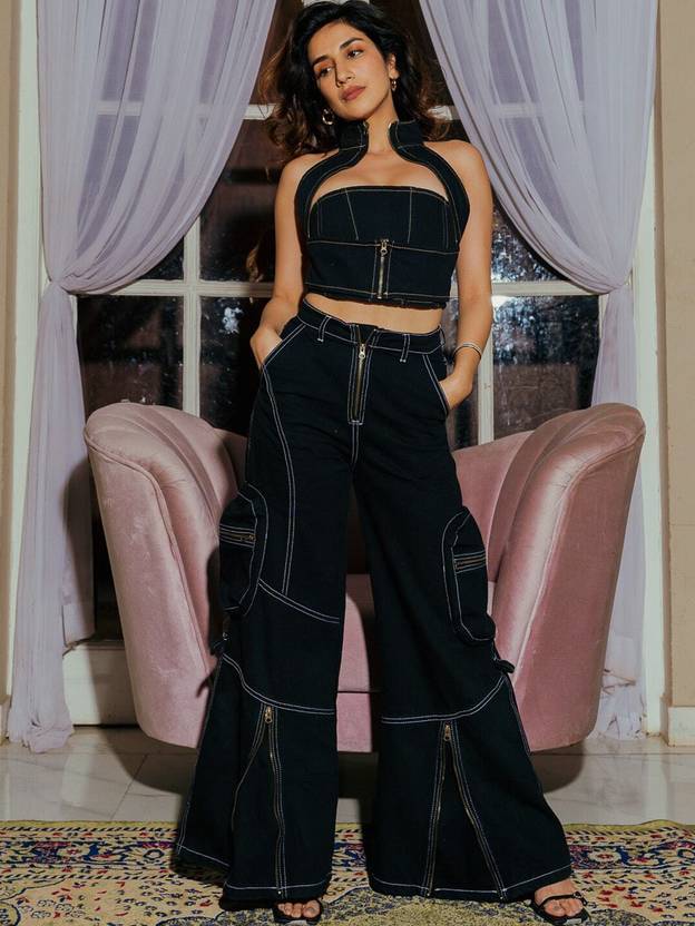 Women Flared High Rise Black Jeans