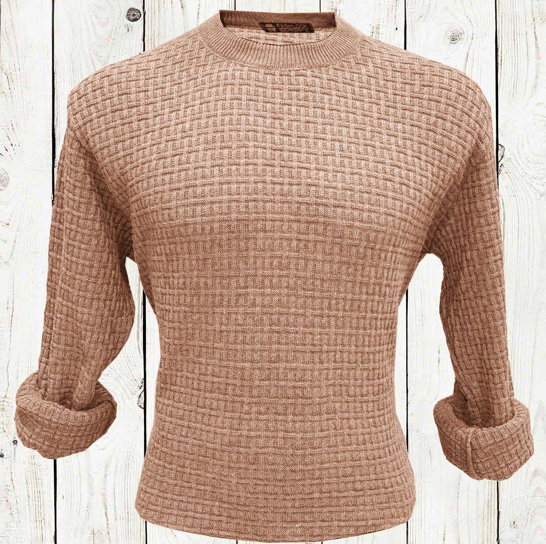 FREAKS Solid Round Neck Casual Men Beige Sweater