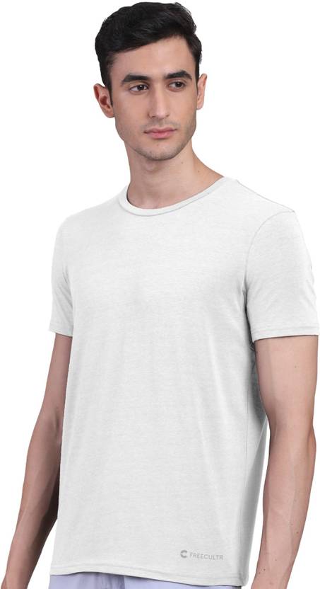FREECULTRĀ Bamboo Undershirt, Anti Microbial Super Soft & Comfort Fit Lounge wear and Sleep wear Tshirt Men Solid Round Neck Organic Cotton White T-Shirt