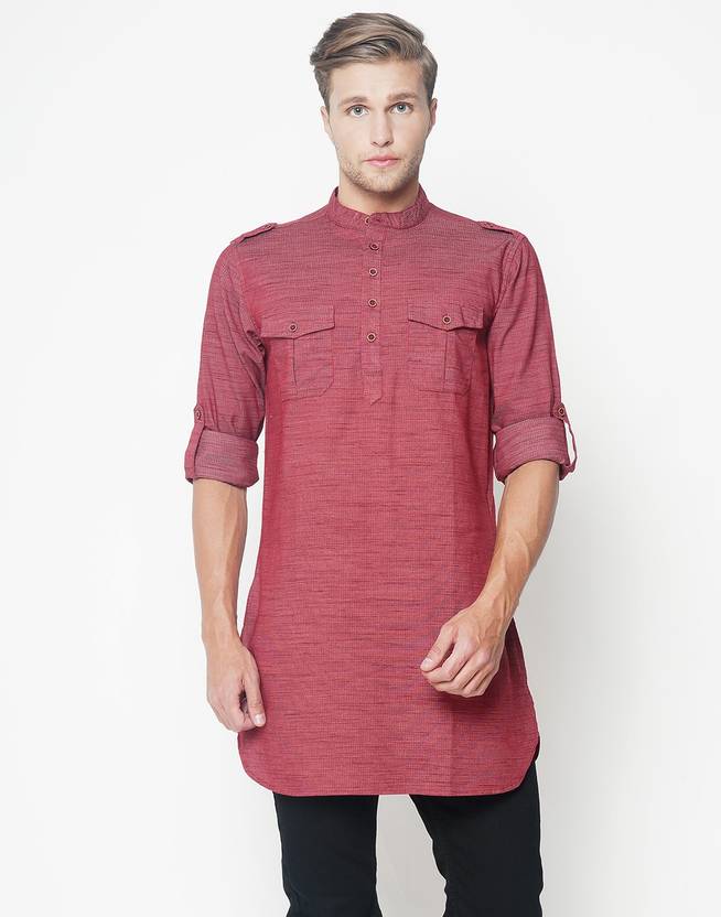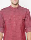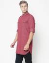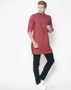 Freehand Men Solid Pathani Kurta (Maroon)