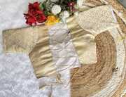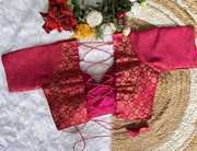 Made from luxurious silk fabric, this readymade blouse drapes beautifully and feels incredibly soft against your skin. The chic backless design adds a touch of sophistication, while the adjustable criss-cross dori tie-up ensures a perfect fit for any body type.