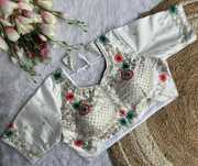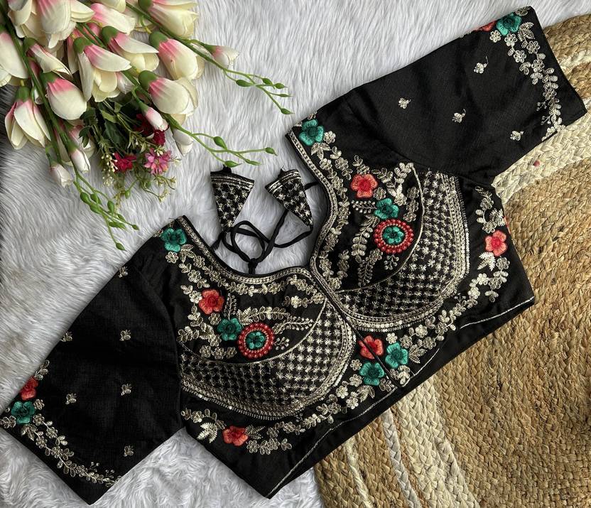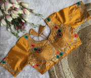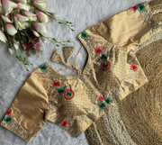 This elegant blouse is crafted from luxurious silk fabric and features intricate gold embroidery with a flattering sweetheart neckline. Available in a variety of vibrant colors to suit your style.
