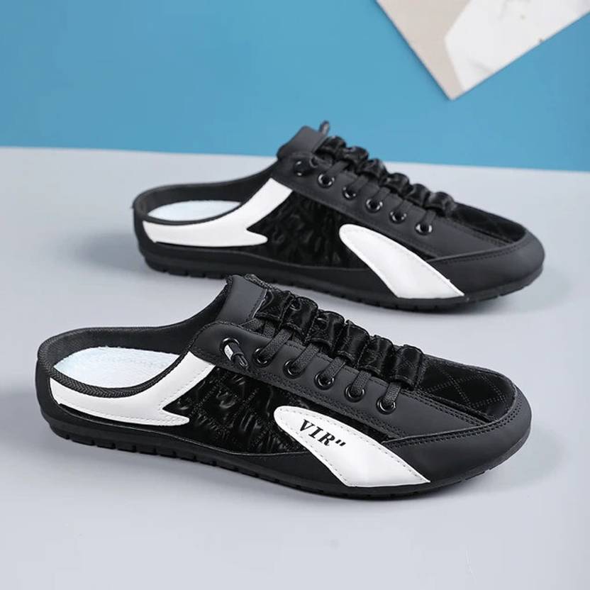 tylish Men's Half Back Open Backless Footwear, Lace Up Outdoor Casual