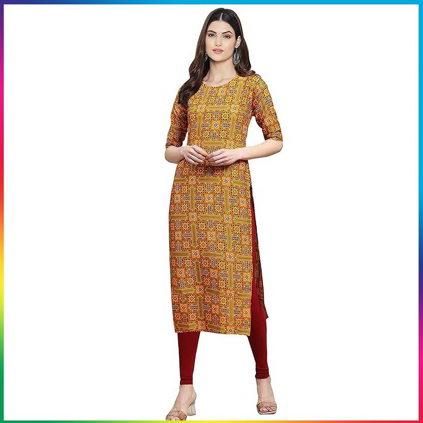 Women Printed Cotton Linen Straight Kurta (Multicolor)