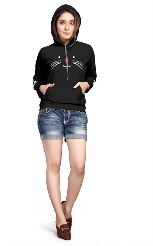 Women Full Sleeve Graphic Print Hooded Sweatshirt