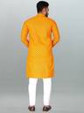 The men's kurta with attractive printed patterns is a versatile outfit that is perfect for any occasion. The intricate designs and vibrant colours of the printed patterns add a touch of elegance and style to the traditional kurta. Whether it's a formal event or a casual gathering, this eye-catching outfit is sure to make you stand out and make a lasting impression.