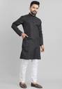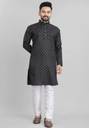 FRELUROΒ Men Printed, Self Design Cotton Blend, Polyester Straight KurtaΒ (Black)