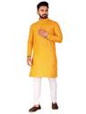 This men's kurta with side pocket detail is not only stylish but also functional. The side pocket adds versatility and convenience to the traditional garment, allowing you to easily store small essentials like keys, wallet, or phone. This feature enhances the practicality and modern appeal of the kurta, making it a must-have in every man's wardrobe.