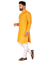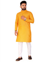 This kurta features a classic and simple design with a printed pattern, perfect for any man. Also, this kurta is comfortable and stylish, making it a must-have in every man's wardrobe. The printed pattern adds a touch of uniqueness and flair to the traditional garment, offering a modern twist on a timeless piece. You can choose this kurta for a refined and elegant look.