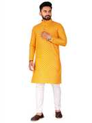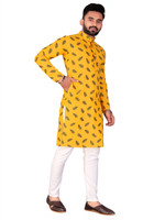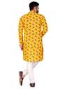 FRELURO Men Printed Straight Kurta (Yellow)