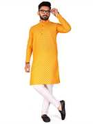The comfortable fit of men's kurta ensures that the garment drapes well on the body, providing both style and comfort. This kurta's length makes it stand above the knee, giving it a modern and laid-back look. The kurta's attractiveness is preserved while its length improves comfort and ease of leg mobility.