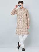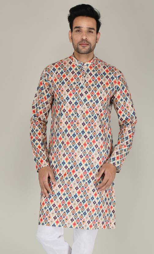 ELEPANTS Men Printed Cotton Blend Straight Kurta (Multicolor)