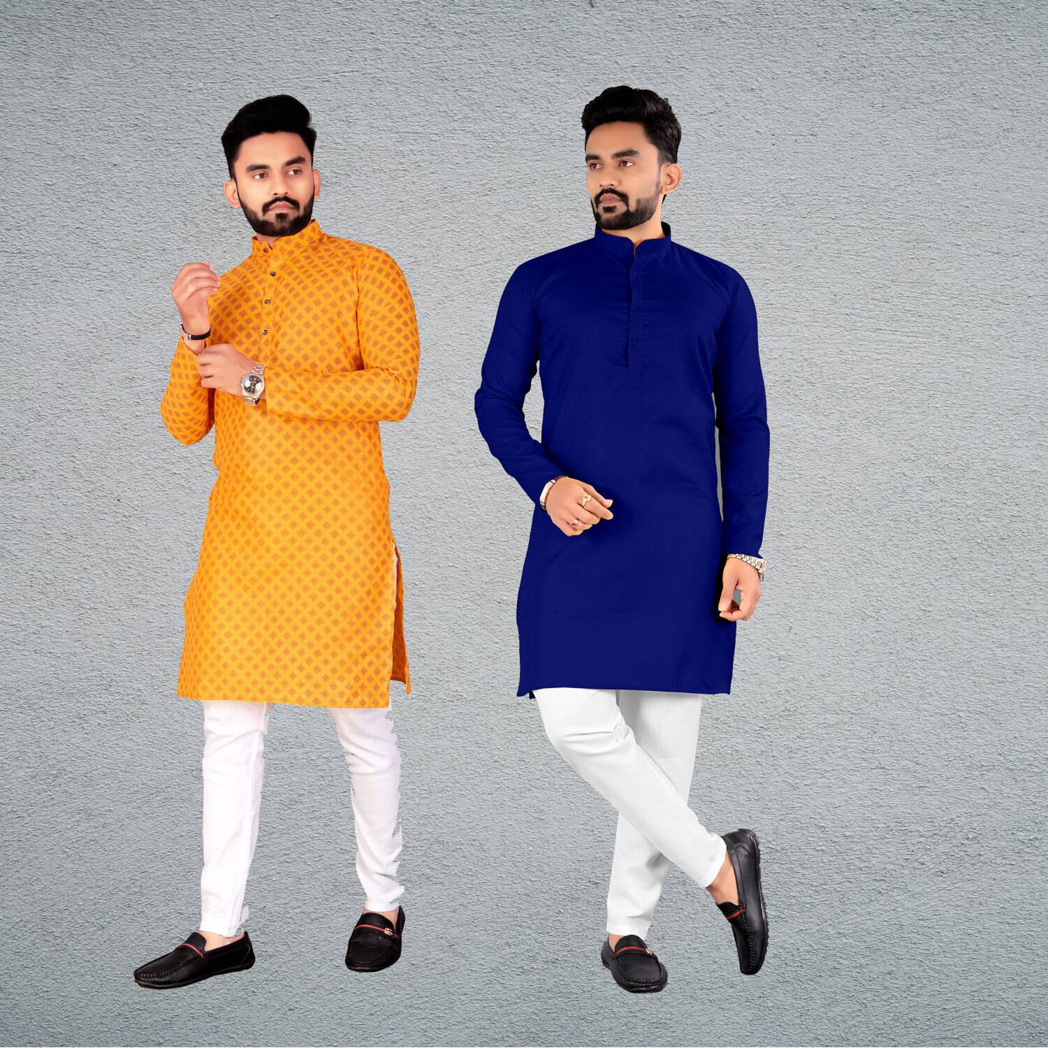 This Trendy And Attractive Men's Pathani kurta And Look Stylish Effortlessly. Made To Accentuate Any Body Type, It Will Give You That Extra Oomph And Make You Stand Out Wherever You Are. This kurta Is Ideal For The Party,Ocassional,Festive,Evening, Valentines Day, Birthday, casual, Etc.The Kurta Is Made Of Standard Fabric Material Which Feels Very Smooth On Skin.. It features Full sleeve, Shirt Collar.Festival/Casual wear Men's Cotton fabric kurta with long sleeves and Cut away collar that you pair with pajama,churidar,jeans.
