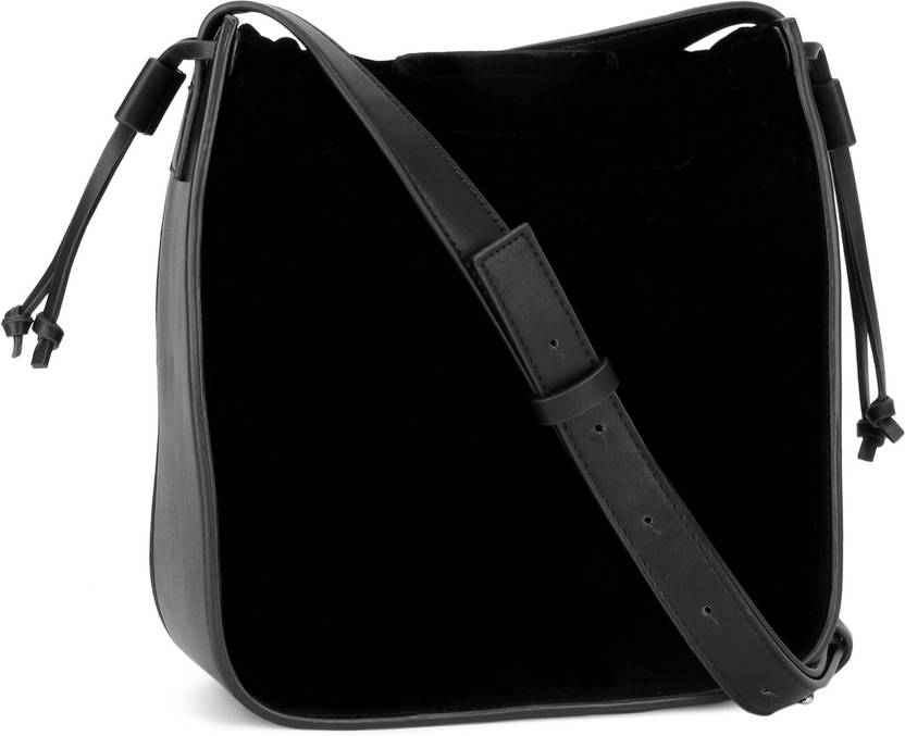 French Connection Black Sling Bag DANE VELVET CROSS BODY